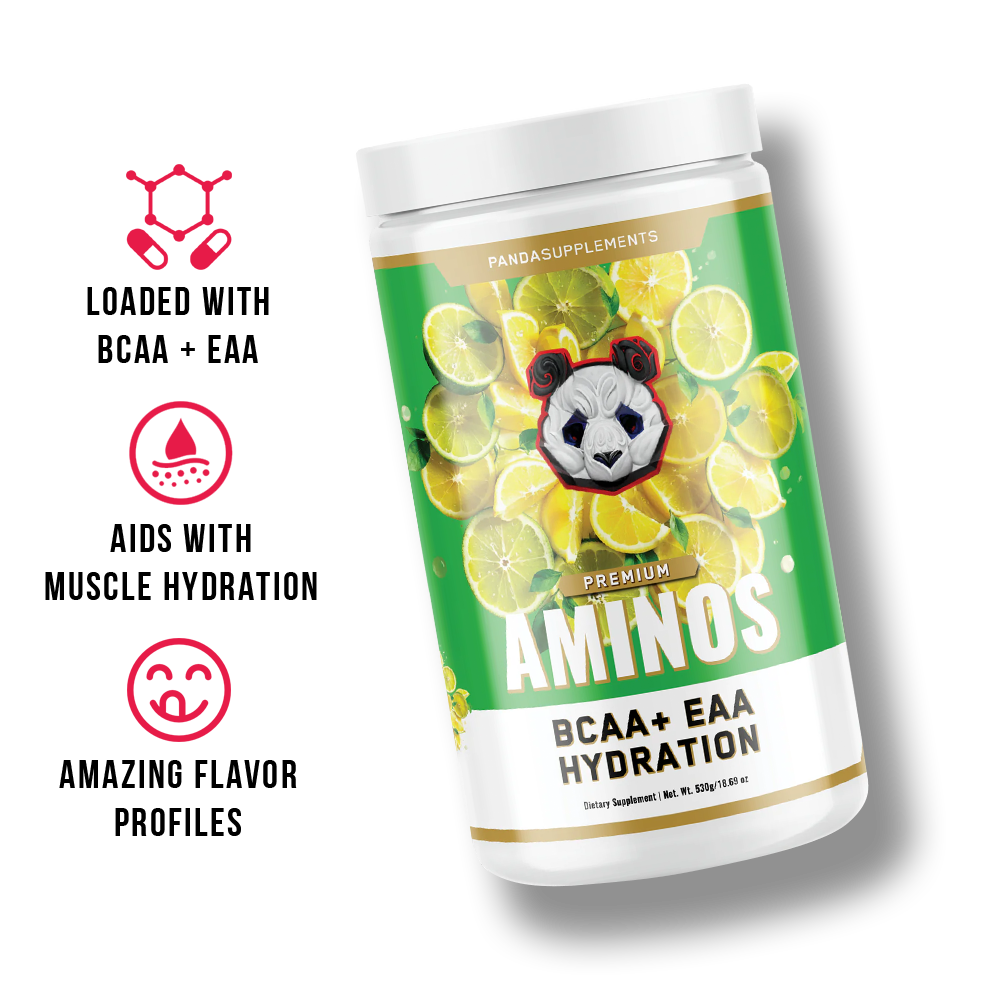 Crank up your workouts with our Panda AMINOS | BCAA + EAA + HYDRATION + ELECTROLYTES recovery matrix. Experience muscle hydration and induce rapid muscle recovery with Panda AMINOS | BCAA + EAA + HYDRATION + ELECTROLYTES. These high quality amino acids not only are loaded with all essentials you need to power up your recovery but they also taste absolutely amazing.