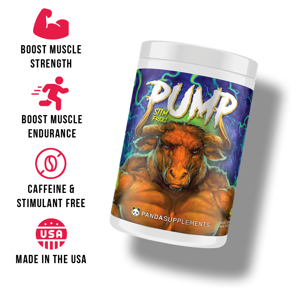 Pump is an advanced stimulant FREE pre-workout, loaded with the power of nootropics to help with performance and sustain focus. PUMP Pre-workout is perfect for anyone sensitive to stimulants, working out late at night, or cycling off of caffein. This pre-workout helps with a massive increase in nitric oxide and a significant boost in muscle strength and endurance.