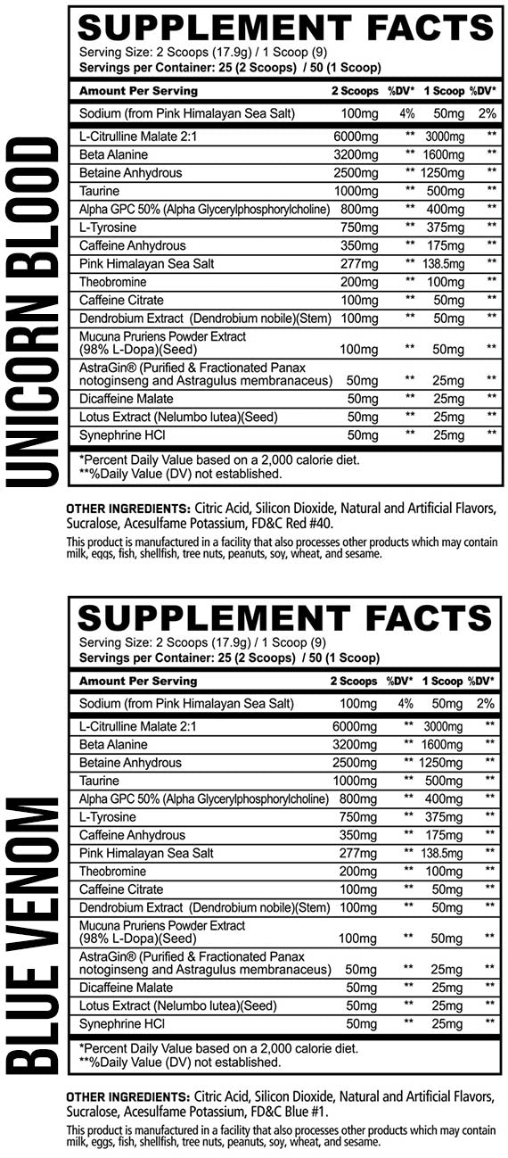 WARNING: This is a Super Extreme PRE! Start with 1/2 Scoop to gauge tolerance. Do NOT exceed 2 scoops.