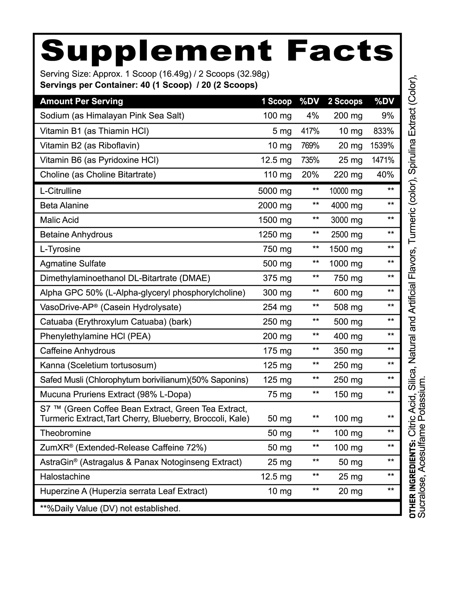 This is an extremely HIIGH STIM PRE! Do not exceed more than 2 scoops per day.