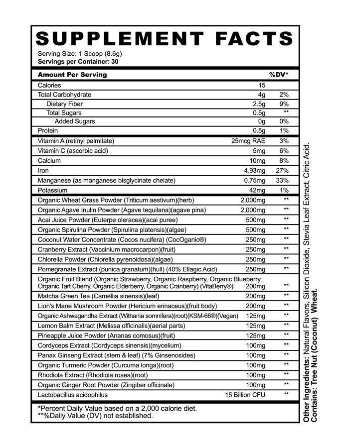 Mix 1 scoop of NATURAL GREENS with 8-16 ounces of water or your favorite milk or smoothie. Enjoy once or twice a day.